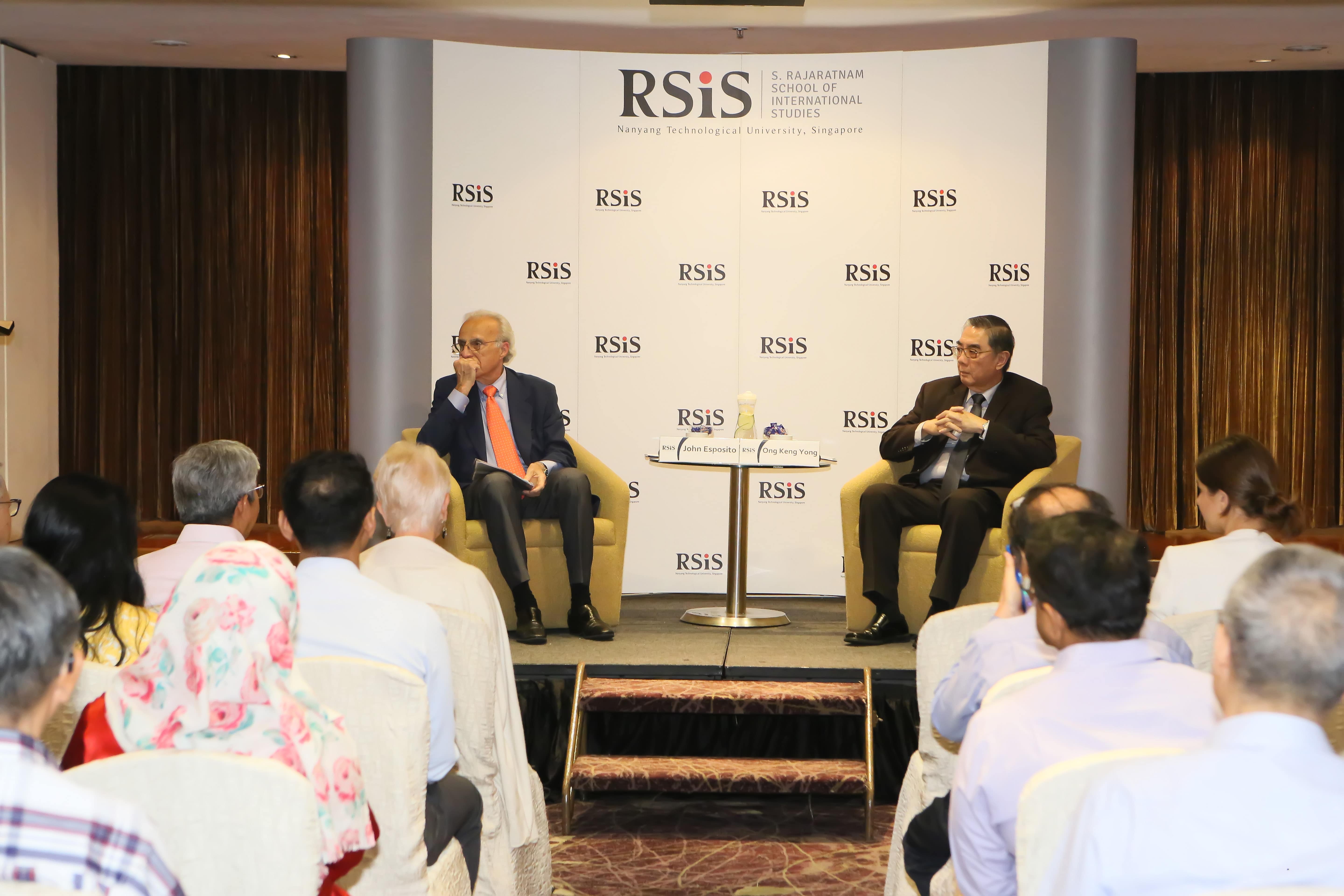John L. Esposito is University Professor, Professor of Religion and International Affairs and of Islamic Studies and Founding Director of the Prince Alwaleed bin Talal Center for Muslim-Christian Understanding and of The Bridge Initiative: Protecting Pluralism – Ending Islamophobia at Georgetown University. He is currently visiting RSIS as S. Rajaratnam Professor of Strategic Studies. His more than 55 books include: What Everyone Needs to Know about Islam; Shariah, What Everyone Needs to Know; The Future of Islam; Who Speaks for Islam?: What a Billion Muslims Really Think; Religion and Violence; Unholy War: Terror in the Name of Islam; The Islamic Threat: Myth or Reality?; Islam and Democracy after the Arab Spring; Islamophobia and the Challenge of Pluralism in the 21st Century. Esposito’s writings are translated into more than 45 languages.