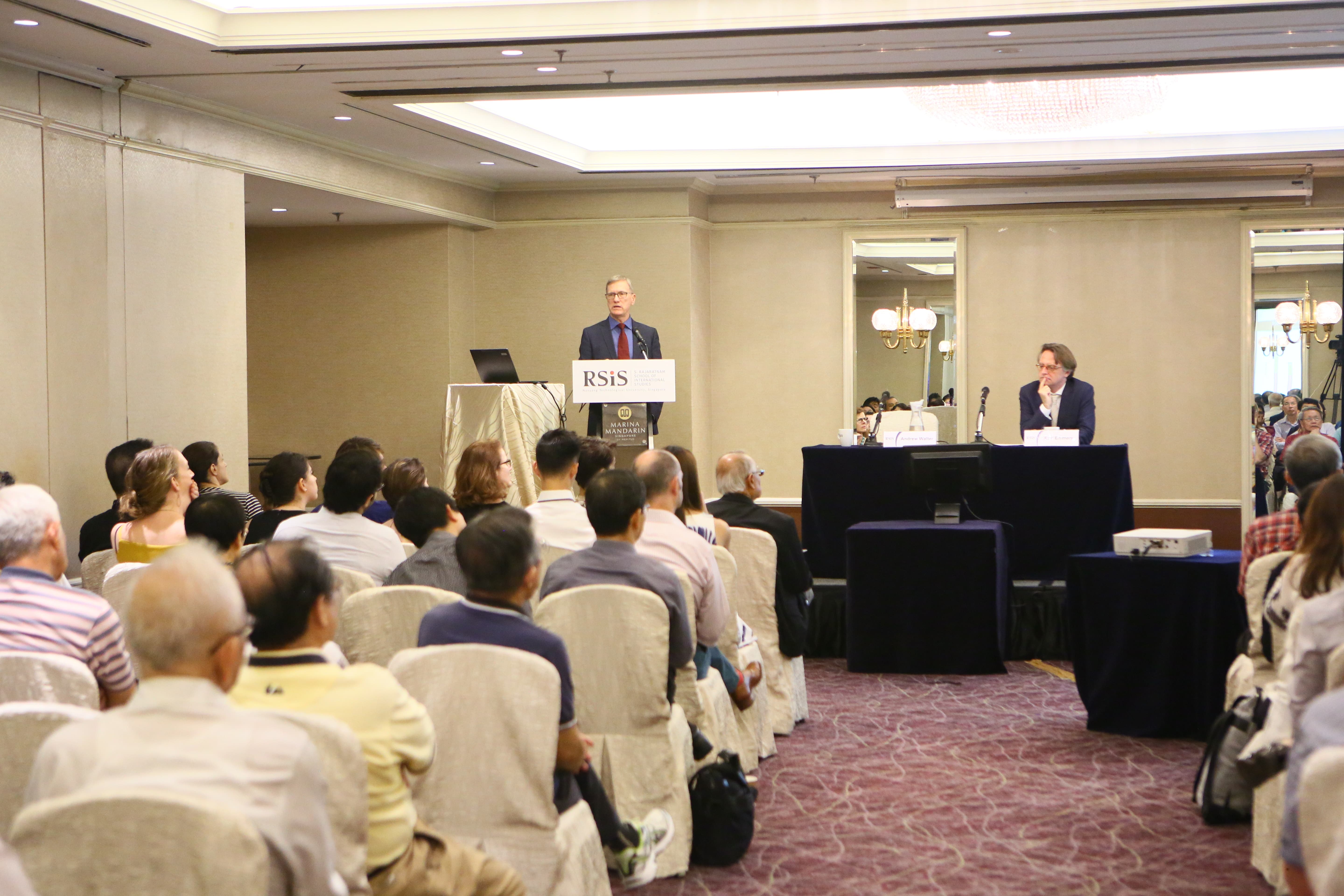 On 4 October 2019, Professor Andrew Walter, NTUC Professor of International Economic Relations at RSIS and Professor of International Relations at the University of Melbourne, delivered a public lecture at Marina Mandarin Singapore, on how financial insecurity affects support for populist policies. The lecture was titled “Crises, Political Populism, and Wealth Shocks: Why Wealth Anxiety Matters for Domestic and Global Politics”.