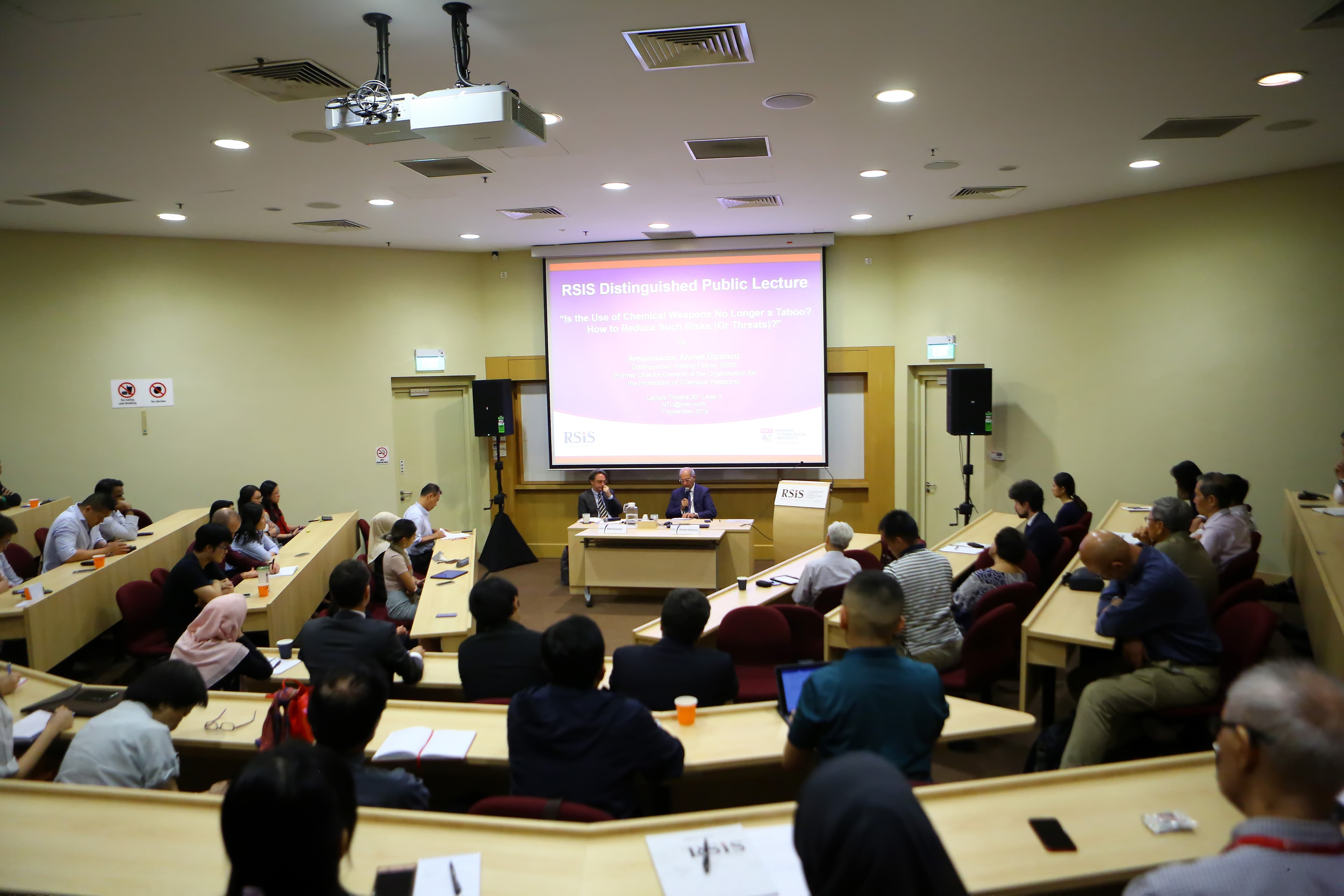 This was the key point made by Ambassador Ahmet Üzümcü, former director-general of the Organisation for the Prohibition of Chemical Weapons (OPCW), at an RSIS Distinguished Public Lecture on 7 November 2019. Outlining the progress in and challenges to the implementation of the CWC, Amb Üzümcü pointed out that the convention is the world’s first multilateral disarmament agreement to provide for the elimination of an entire category of weapons of mass destruction within a fixed time frame.