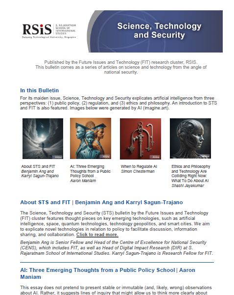 The Science, Technology and Security (STS) bulletin by the Future Issues and Technology (FIT) cluster features thought pieces on key emerging technologies, such as artificial intelligence, space, quantum technologies, technology geopolitics, and smart cities. We aim to explicate novel technologies in relation to policy to facilitate discussion, information sharing, and collaboration. Click to read more.