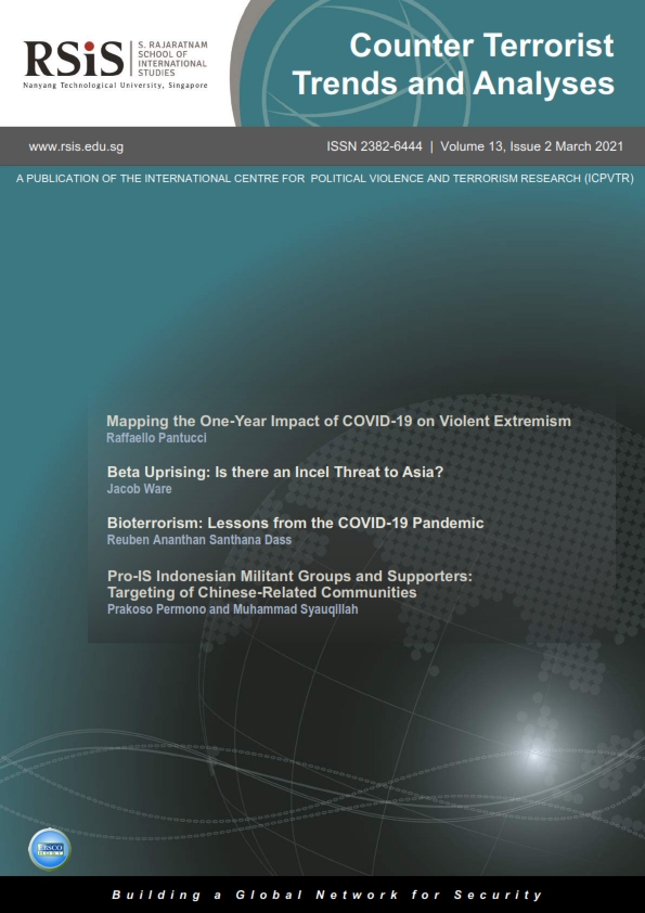 In the third article, Reuben Ananthan Santhana Dass assesses the threat of bioterrorism in light of the ongoing COVID-19 pandemic. According to the author, the devastating social, economic and physical impact of the global health crisis has potentially reignited interest among transnational extremist and terrorist groups such as the Islamic State (IS), in developing, acquiring and deploying biological weapons. However, while recent technological advances have arguably made the development of such weapons easier, cheaper and more accessible, the author argues it is unlikely that threat groups currently possess the know-how to plan and execute large-scale and centrally-directed bio-terror attacks. But the prospect of lone-actor driven and low-impact bio-terror attacks cannot be discounted. As such, countries need to fortify their bio-defense capabilities, especially as the pandemic has highlighted numerous preparedness gaps, including in data sharing, medical equipment availability and testing capacity.