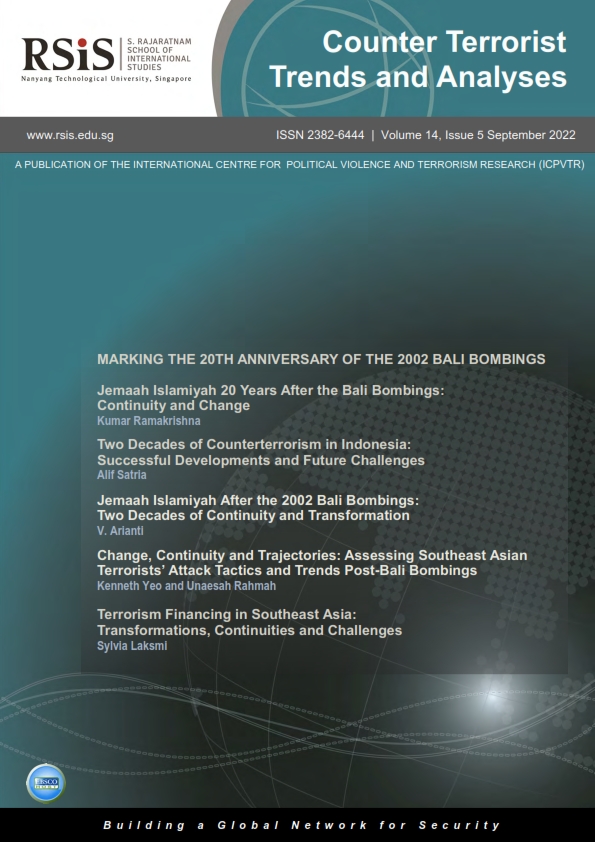 Next, Alif Satria examines the trajectory of Indonesia’s counter-terrorism policies and P/CVE programmes over the past two decades. The author notes that despite the authorities’ increased attention to the P/CVE space, and progress in disrupting both JI and pro-IS networks, the terrorist threat persists. Besides domestic initiatives, Indonesia should also increase its engagement with its regional neighbours to develop its counterterrorism (CT) capabilities further, he adds. Thirdly, V. Arianti charts the transformation of the JI network to become a social and political force – in addition to the militant force it already is. In this regard, JI is possibly learning from other similar outfits overseas, such as the Muslim Brotherhood and the Hezbollah. Still, its resumption of a more militant path cannot be ruled out.