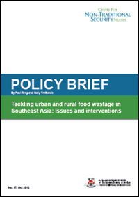 Food wastage is prevalent in Southeast Asia and has significant implications for the region’s food, environmental and economic security. It is likely that the region wastes approximately 33 per cent of food, but accurate estimates are not available due to a dearth of quantitative information. Wastage occurs at all stages of food supply chains, from the point of production to post-harvest, retail and consumption. Effective interventions to prevent and minimise food wastage exist but are not widely implemented in Southeast Asia. In the context of these issues, the RSIS Centre for Non-Traditional Security (NTS) Studies hosted an Expert Working Group Meeting in August 2012 to discuss food wastage in Southeast Asia. This policy brief draws on the findings of the meeting and provides several policy recommendations for Southeast Asian governments to address urban and rural food wastage.