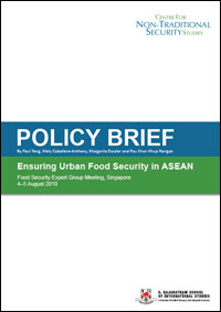 This policy brief provides the main findings of the Food Security Expert Group Meeting which was convened by the RSIS Centre for Non-Traditional Security (NTS) Studies in Singapore on 4-5 August 2010. The Meeting brought together experts from multilateral and bilateral agencies, international and regional organisations, universities, agribusiness firms and relevant Singapore government agencies. It aimed to examine the context of urban food security relative to global food security and rural food security; explore the development of an ASEAN (Association of Southeast Asian Nations) Food Security Management Information System; assist in developing a research agenda on urban food security; and identify possible roles for Singapore in the global food system.