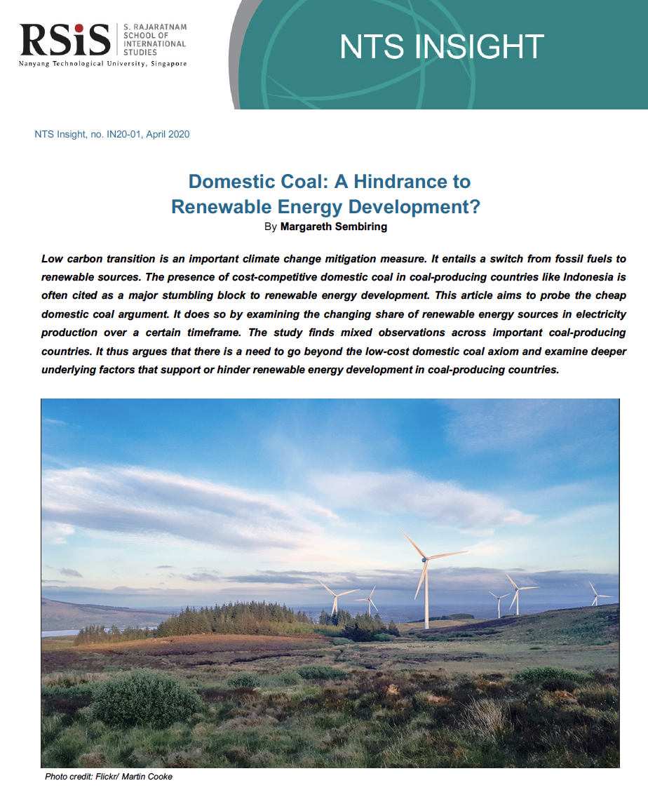 Low carbon transition is an important climate change mitigation measure. It entails a switch from fossil fuels to renewable sources. The presence of cost-competitive domestic coal in coal-producing countries like Indonesia is often cited as a major stumbling block to renewable energy development. This article aims to probe the cheap domestic coal argument. It does so by examining the changing share of renewable energy sources in electricity production over a certain timeframe. The study finds mixed observations across important coal-producing countries. It thus argues that there is a need to go beyond the low-cost domestic coal axiom and examine deeper underlying factors that support or hinder renewable energy development in coal-producing countries.