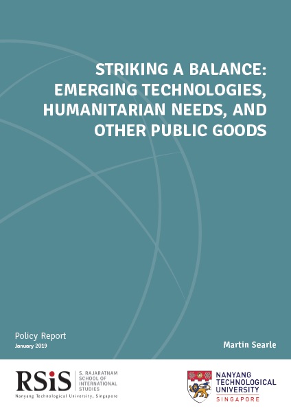 In December 2017 the Centre for Non-Traditional Security Studies at the S. Rajaratnam School of International Studies (RSIS) identified four policy balances that must be struck when using emerging technologies in humanitarian operations. This report specifically explores how to balance humanitarian uses of emerging technologies and other public goods. It presents two principal findings. First, inhabitants of less regulated, often less developed locations, shoulder a greater burden of the risk from experimenting with emerging technologies for humanitarian use. Second, humanitarians’ regulation of their own innovation efforts may produce sub-optimal, even perverse, results. The paper gives several policy recommendations in light of these findings.