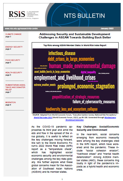 As the COVID-19 pandemic approaches its third year and amid the ebb and flow in the spread of the virus globally, it is useful to reflect on the key challenges moving forward. We turn to the World Economic Forum’s 2022 World Risk Index (WRI) report as a “temperature check”, which has highlighted social/economic security and environmental challenges among the key risks globally. We further explore what these global concerns mean for the Association of Southeast Asian Nations (ASEAN) and its member states.