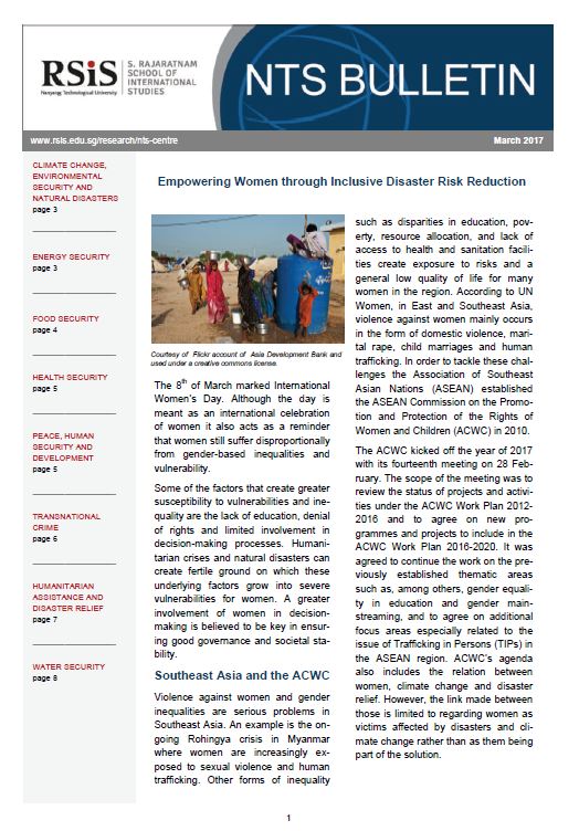 Nair, Tamara. “Empowering Women through Inclusive Disaster Risk Reduction”. NTS Bulletin. March 2017 Issue.