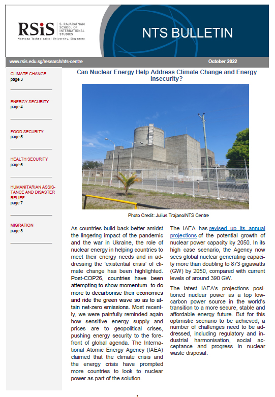 As countries build back better amidst the lingering impact of the pandemic and the war in Ukraine, the role of nuclear energy in helping countries to meet their energy needs and in addressing the ‘existential crisis’ of climate change has been highlighted. Post-COP26, countries have been attempting to show momentum to do more to decarbonise their economies and ride the green wave so as to attain net-zero emissions. Most recently, we were painfully reminded again how sensitive energy supply and prices are to geopolitical crises, pushing energy security to the forefront of global agenda. The International Atomic Energy Agency (IAEA) claimed that the climate crisis and the energy crisis have prompted more countries to look to nuclear power as part of the solution.