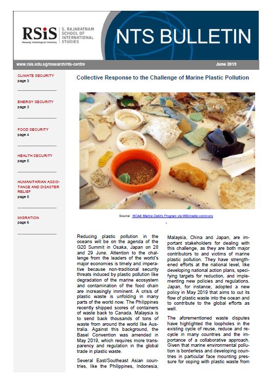 Given that marine plastic pollution will be discussed at the forthcoming G20 Summit, it is important that the needs and challenges of developing countries are given sufficient consideration in the discussion. Since Japan is the host and Indonesia, Singapore and China will attend the summit, East/Southeast Asian countries may take the opportunity to feature their perspectives in the global debate. Collaboration in financing and technological innovations should be emphasised as these two aspects are essential for better waste management and reduction in pollution in developing countries.