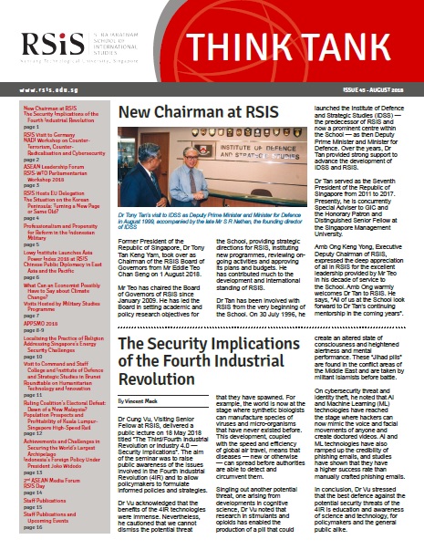 During an RSIS Public Lecture by Dr Cung Vu on 18 May, he spoke on the benefits and implications of 4IR.